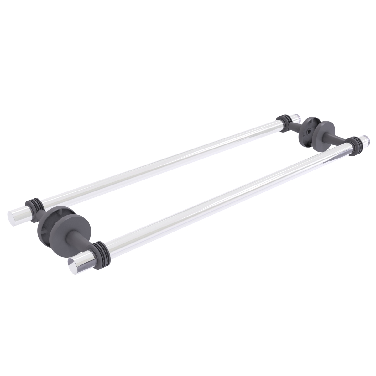 ALLIED BRASS CV-41D-BB-24-GYM CLEARVIEW 28 INCH BACK TO BACK SHOWER DOOR TOWEL BAR WITH DOTTED ACCENTS, MATTE GRAY