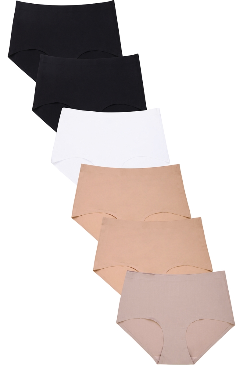 Mopas LPN2070R1-6PK-LG Womens Intimate Set No Show Brief Panty, Assorted Colors - Large - 6 Pairs