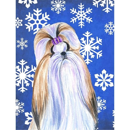 28 x 40 In. Shih Tzu Winter Snowflakes Holiday Flag Canvas- House Size