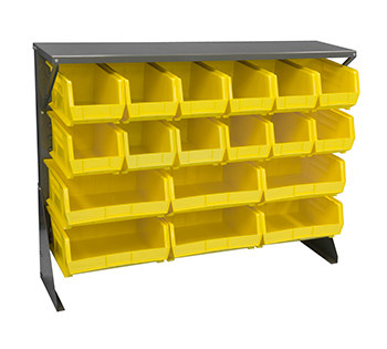 Akro-Mils 30650GY240B 1-Sided Low Profile Floor Rack, Shelf with 24 AkroBins, Gray/Blue