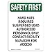 OSHA SAFETY FIRST Sign, Hard Hats Required Suspended Load, 7in X 5in Decal