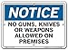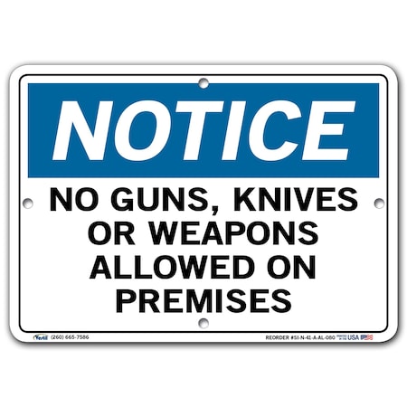 Vestil SI-N-41-A-AL-080 Notice Sign Aluminum .080" Overall Size 10.5"W x 7.5"H No Guns, Knives, Or Weapons Allowed on Premises , 7.5" Height, 10.5" Wide, 0.08" Length