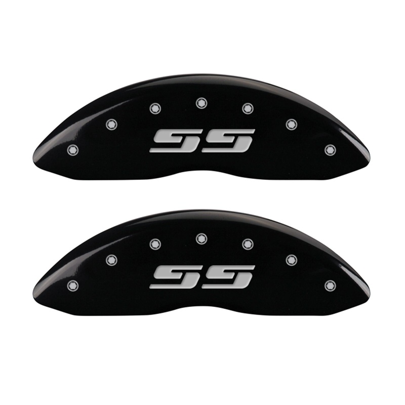 MGP Caliper Covers 14238FSS3BK Black Powder Coat Finish Front Caliper Cover, Set of 2 (Silverado style/SS, Silver Characters, Engraved)