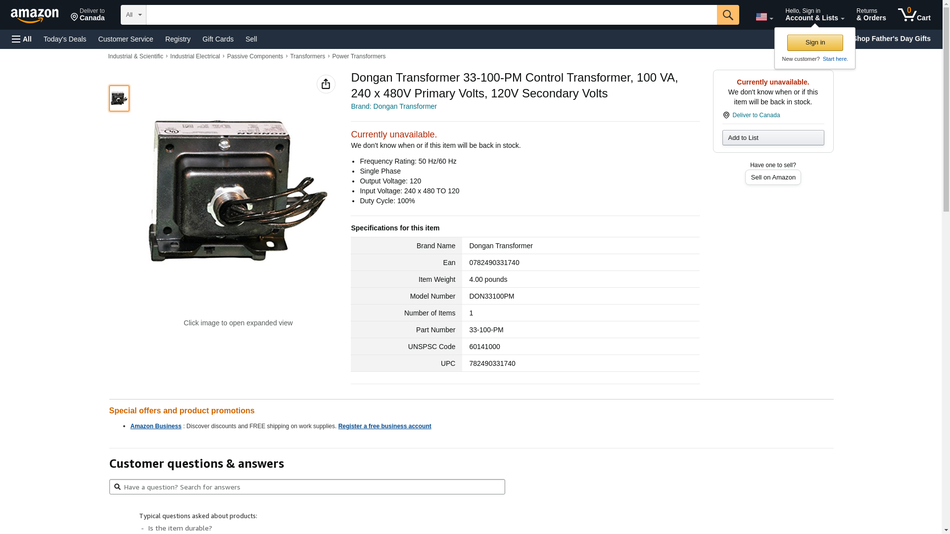 Dongan Electric Manufacturing Company 33100PM XFMR 100VA MULTI-120V
