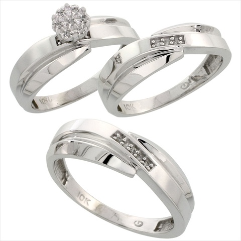 World Jewels 14K White Gold .1 Ct. Brilliant Cut Diamond Wedding Band Set, Size 6.5