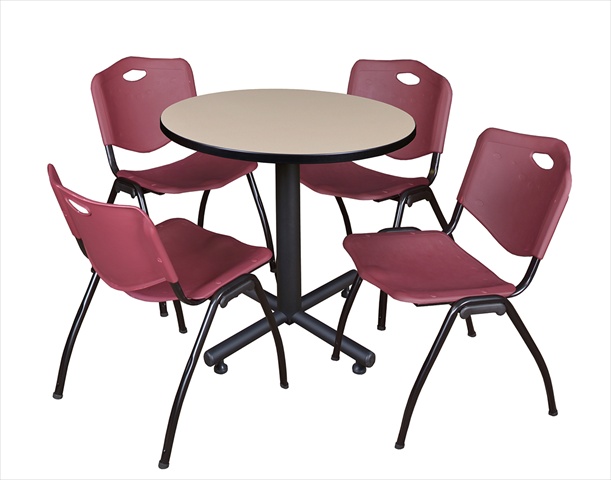 Regency Kobe 30-Inch Round Breakroom Table, Beige, and 4 M Stack Chairs, Burgundy