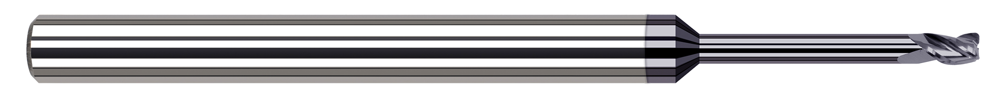 1.00 mm Cutter Diameter x .10 mm Radius x 1.50 mm Length of Cut x 8.00 mm Reach Carbide Corner Radius End Mill For Medium Alloy Steels, 3 Flutes, AlTiN Coated. The variable helix design of this Harvey Tool offering of End Mills for Medium Alloy Steels - Corner Radius - Long Reach, Stub Flute reduces chatter and harmonics, and increases material removal rates (MRR) while its corner radius profile improves strength