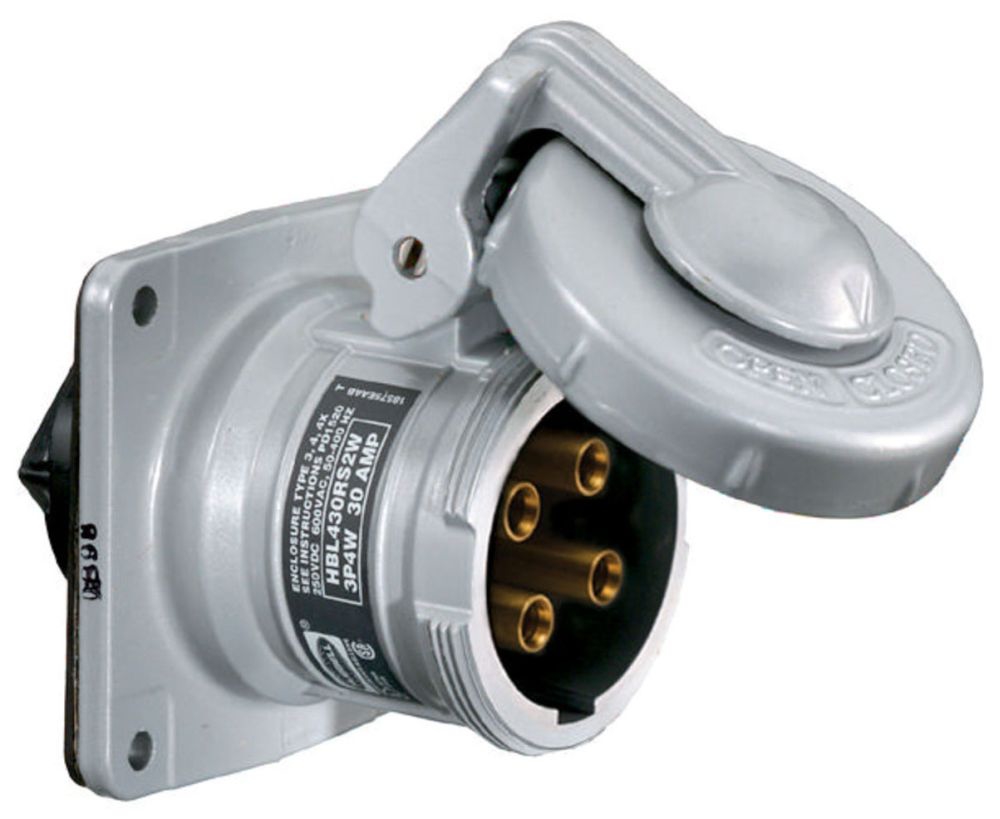 <p>Hubbell HBL430RS2WR Pin and Sleeve Receptacle</p><p>Wiring Device-Kellems HBL Insulgrip Pin and Sleeve Receptacle, 1/3-Phase Flanged Grounding Non-NEMA Style 2 Single Reversed Standard Watertight Screw Mount, 600 VAC, 30 A, 3 Pole, 4 Wires, Industrial Grade, -40 to 75 deg C, Pressure Screw Terminal, Thermoplastic, Black/Gray, 3.89 in L x 3.4 in W</p><p><strong>Additional Description:</strong> HUBW-HBL430RS2WR PS, IEC, RECP, 3P4W, 30A 600V, S2 REV RVS.RECEPTACLE</p><p><strong>Catalog Description:</strong> Heavy Duty Insulgrip Pin and Sleeve Devices, Industrial Grade Female Receptacle, 30A 600V AC, 3-Pole 4-Wire Grounding Style 2,Terminal Screws</p>