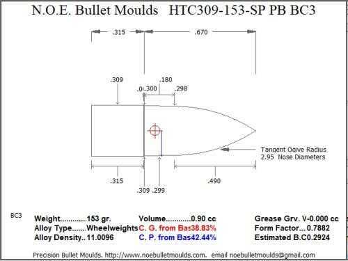 Bullet Mold 2 Cavity Brass .309 caliber Plain Base 153 Grains bullet with a Spire point profile type. Designed for Powder coa - 11229789