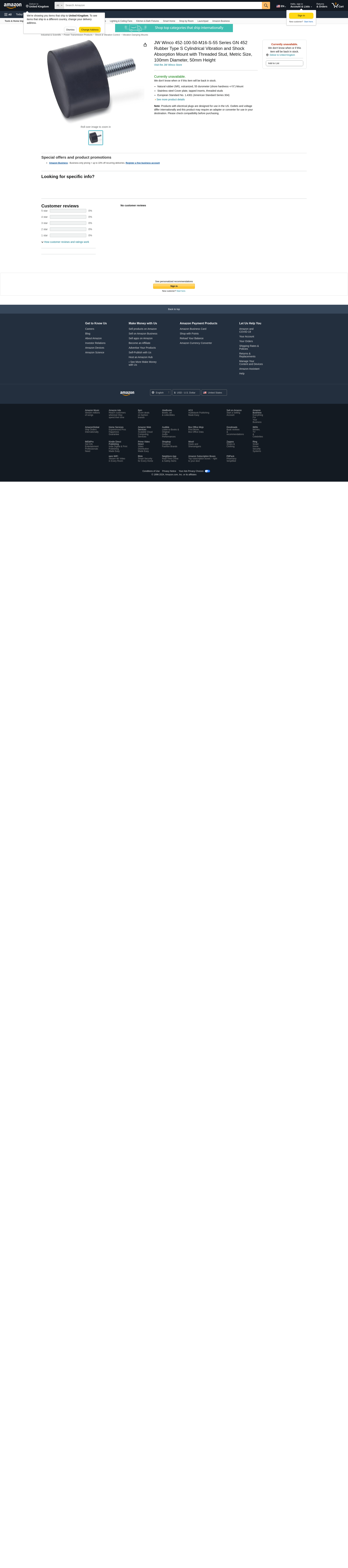 JW Winco 452-100-50-M16-S-55 Series GN 452 Rubber Type S Cylindrical Vibration and Shock Absorption Mount with Threaded Stud, Metric Size, 100mm Diameter, 50mm Height