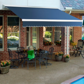 Awntech 12-Feet Destin LX with Hood Right Motor and Remote Retractable Acrylic Awning, 120-Inch Projection, Dusty Blue