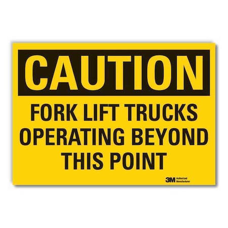 Caution Sign, Horizontal Rectangle, Number of Printed Sides 1, English, Sign Format Traditional OSHA, Sign Legend Fork Lift Trucks Operating Beyond This Point, Sign Legend Background Color Yellow, Sign Legend Style Text