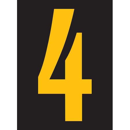' Reflective Number Label, Character 4, Character Height 2-1/2 In., Color Reflective Yellow on Black, Material Engineer Grade Reflective Film, Overall Height 2-7/8 In., Overall Width 1-3/4 In., Standards ASTM D 4956, Package Quantity 25 '