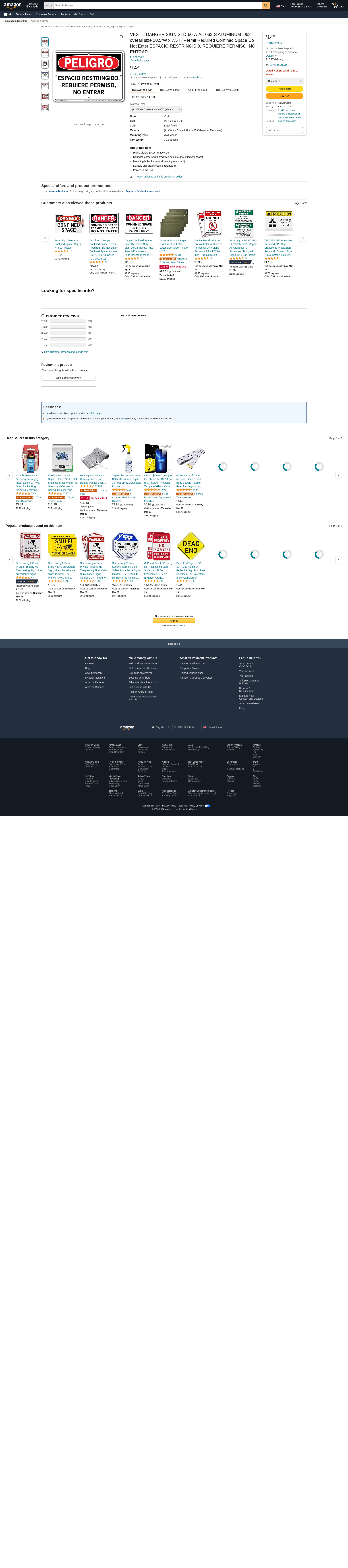 VESTIL DANGER SIGN SI-D-60-A-AL-063-S ALUMINUM .063" overall size 10.5"W x 7.5"H Permit Required Confined Space Do Not Enter ESPACIO RESTRINGIDO, REQUIERE PERMISO, NO ENTRAR
