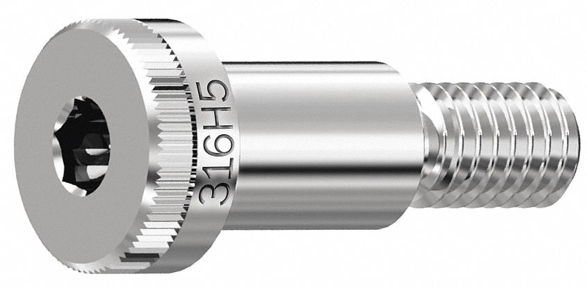 Shoulder Screw, Shoulder Screw Type Standard Shoulder Screw, Head Type Standard, Drive Type Hex, Material Stainless Steel, Material Grade/Class 316 H5, Finish Plain, System of Measurement Inch, Thread Size #4-40, Minimum Thread Length 5/32 in, Shoulder Length 3/8 in, Shoulder Length Tolerance +/-0.005 in, Shoulder Diameter 1/8 in, Shoulder Diameter Tolerance -0.004 in to +0.0 in, Pack Size Small Pack, Head Height 1/8 in, Head Diameter 1/4 in, Dimensional Standards AMPG 2012 ZS.01