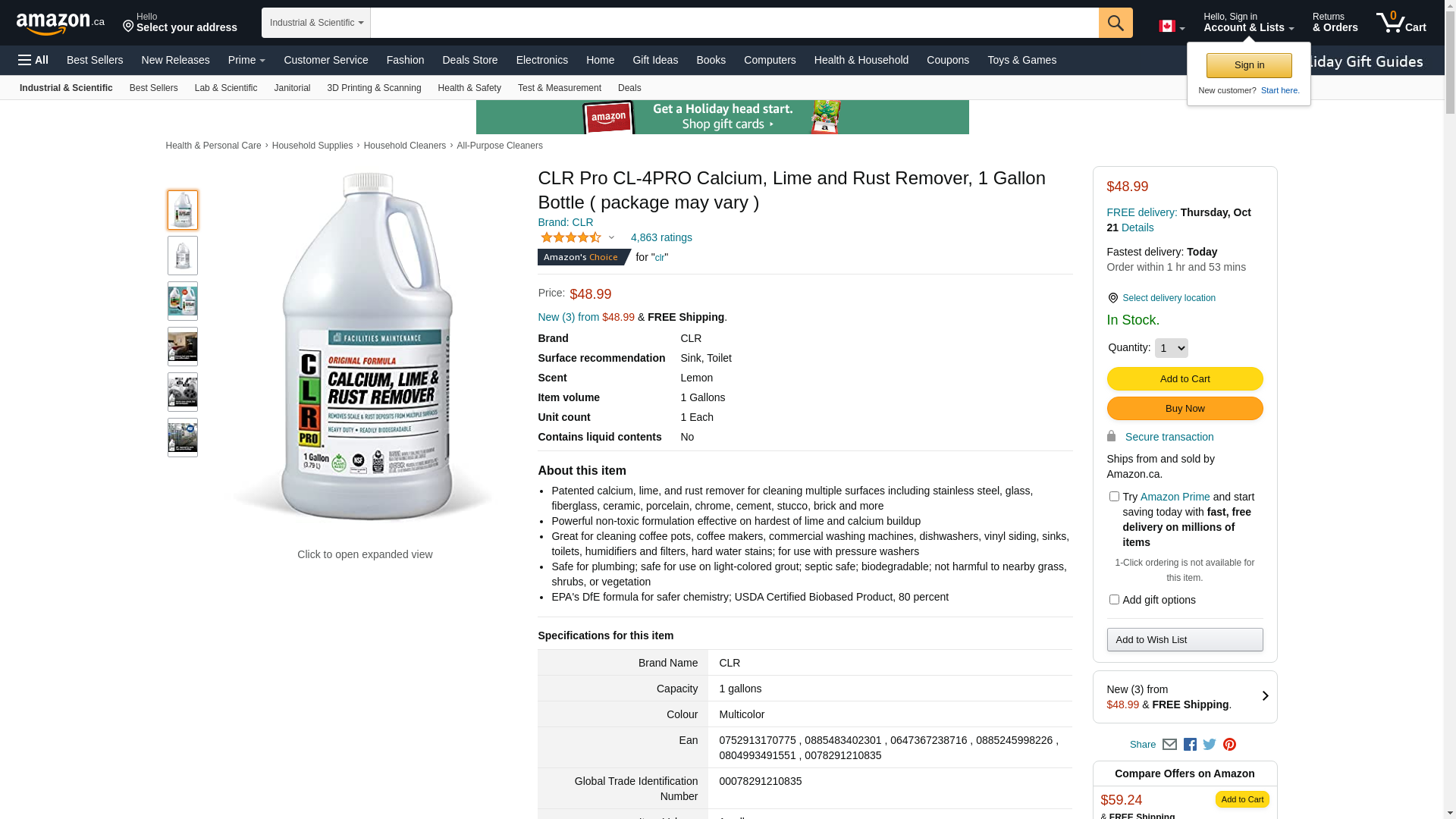 CLR PRO Calcium, Lime & Rust Remover, 1 gallon bottle