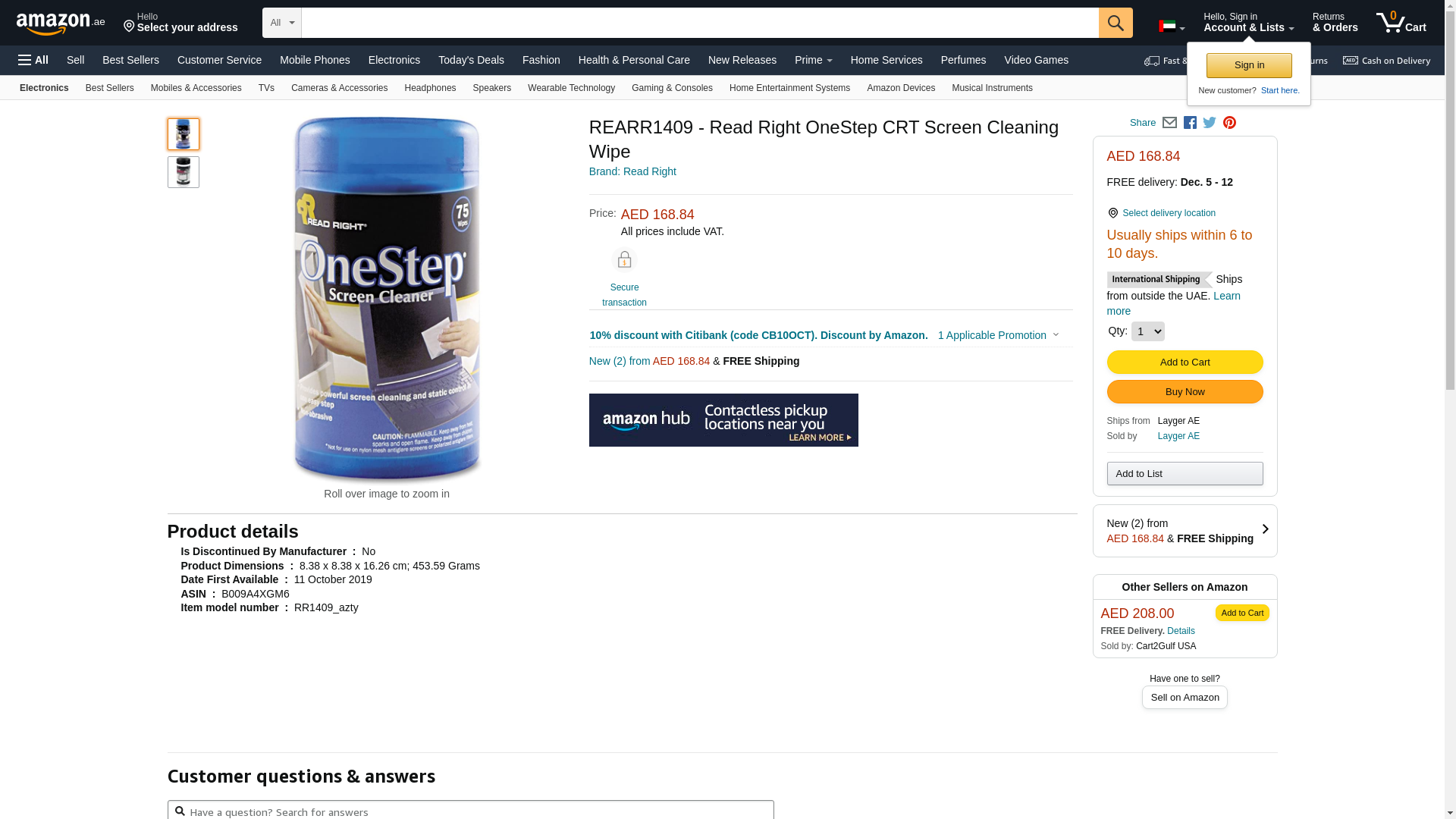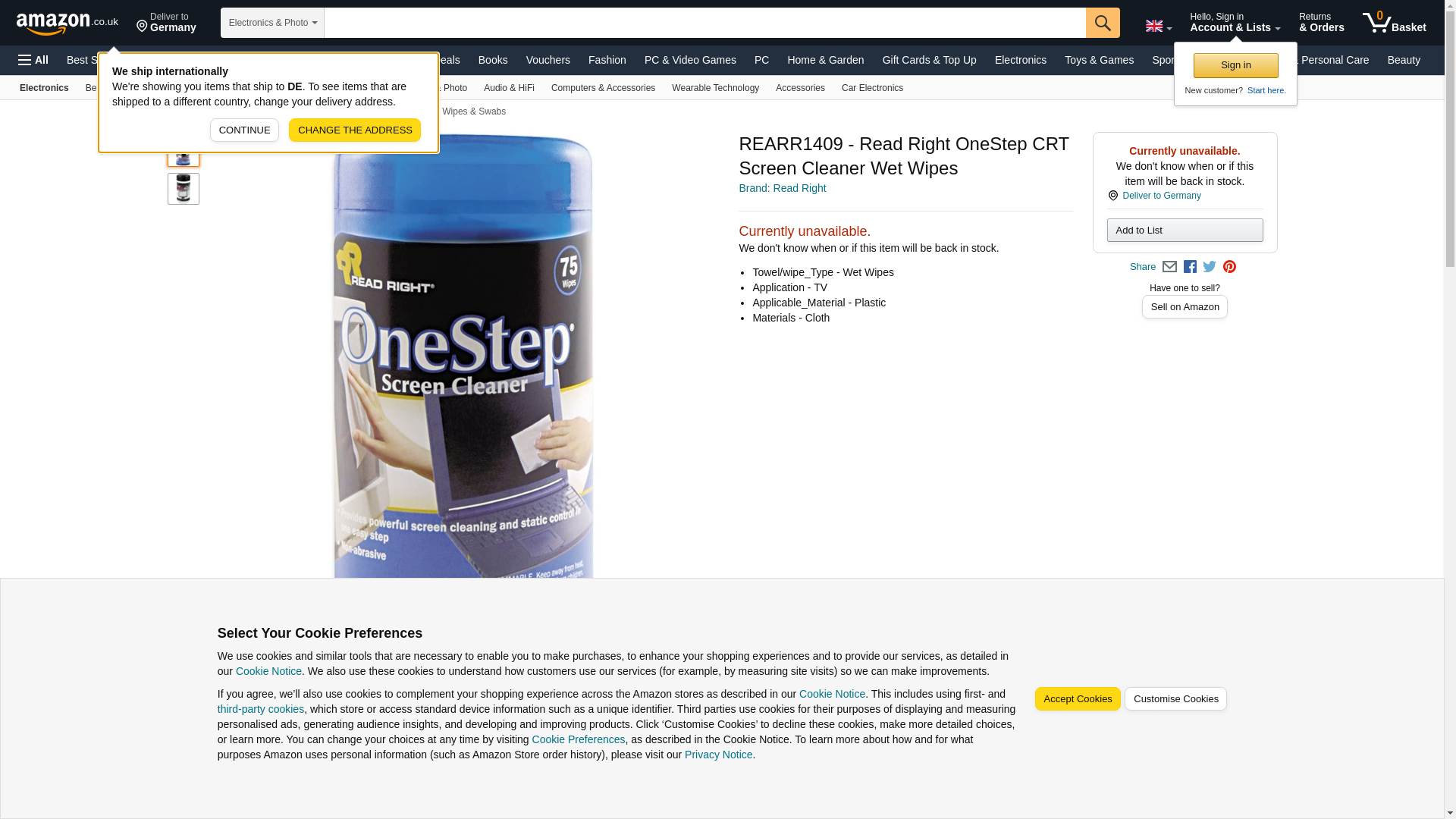 REARR1409 - Read Right OneStep CRT Screen Cleaning Wipe