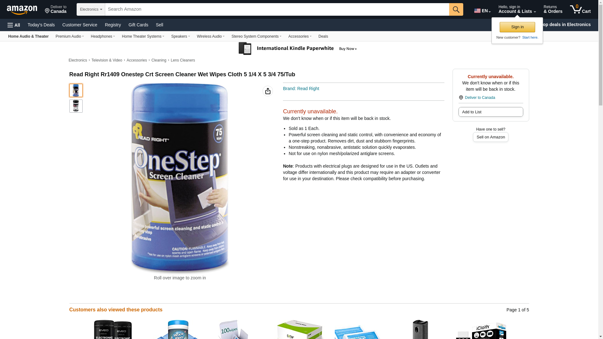 Read Right RR1409 OneStep CRT Screen Cleaner Wet Wipes Cloth 5 1/4 x 5 3/4 75/Tub