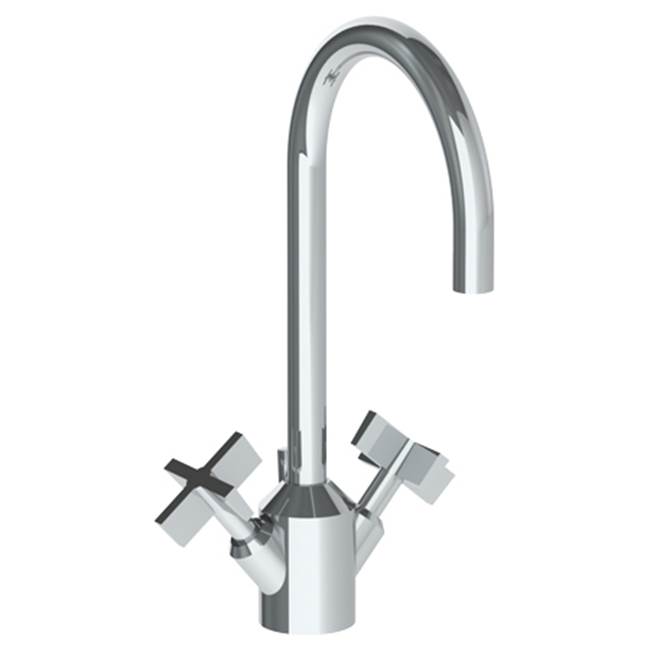 WATERMARK 37-1-BL3-APB BLUE 12 3/4 INCH SINGLE HOLE DECK MOUNT MONOBLOCK BATHROOM FAUCET, AGED BRASS, ROYAL HANDLE