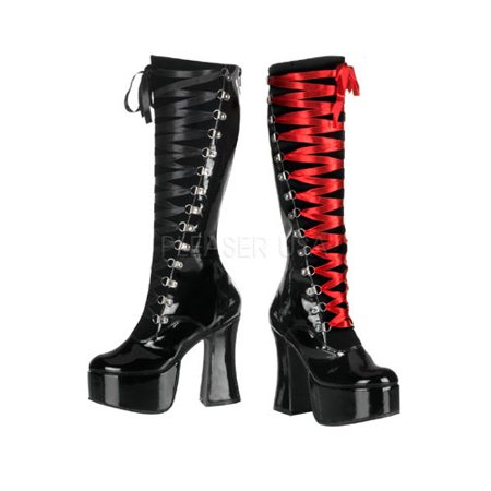 *4 3/4" Goth Punk GoGo Corset Front P/F Blk Pat/Suede Knee - Blk Pat-Sueded Pu, 14