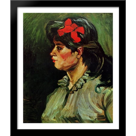 Portrait of a Woman with a Red Ribbon 28x34 Large Black Wood Framed Print Art by Vincent van Gogh