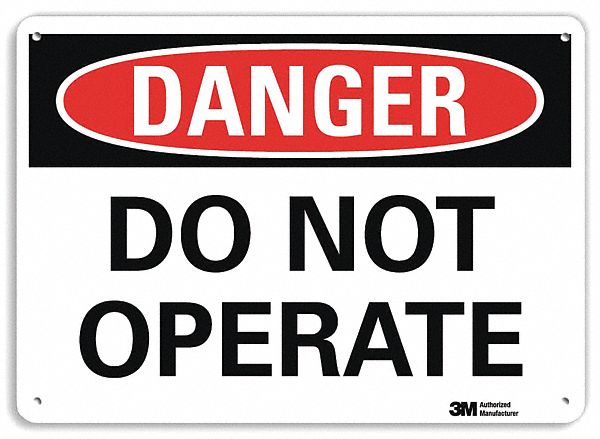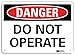 Danger Sign, Vertical Rectangle, Number of Printed Sides 1, English, Sign Format Traditional OSHA, Sign Legend Do Not Operate, Sign Legend Background Color White, Sign Legend Style Text