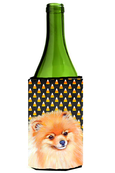 Caroline's Treasures LH9045LITERK Pomeranian Candy Corn Halloween Portrait Wine Bottle Hugger Bottle Cooler Sleeve Hugger Machine Washable Collapsible Insulator Beverage Insulated Holder