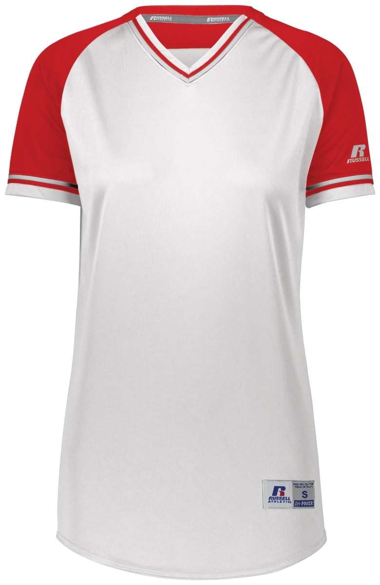 Russell R01X3X.03R.XL Ladies Classic V-Neck Jersey, White & True Red - Extra Large