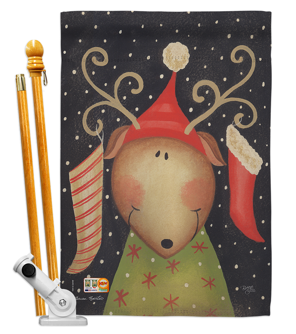Breeze Decor HS114093-BO Reindeer Winter Christmas Decorative Vertical House Flag Set, 28"x 40" w/Flagpole, Multi-Color