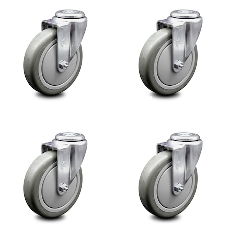 Polyurethane Swivel Bolt Hole Caster Set of 4 w/5" x 1.25" Gray Wheels - Includes 4 Swivel - 1400 lbs Total Capacity - Service Caster Brand