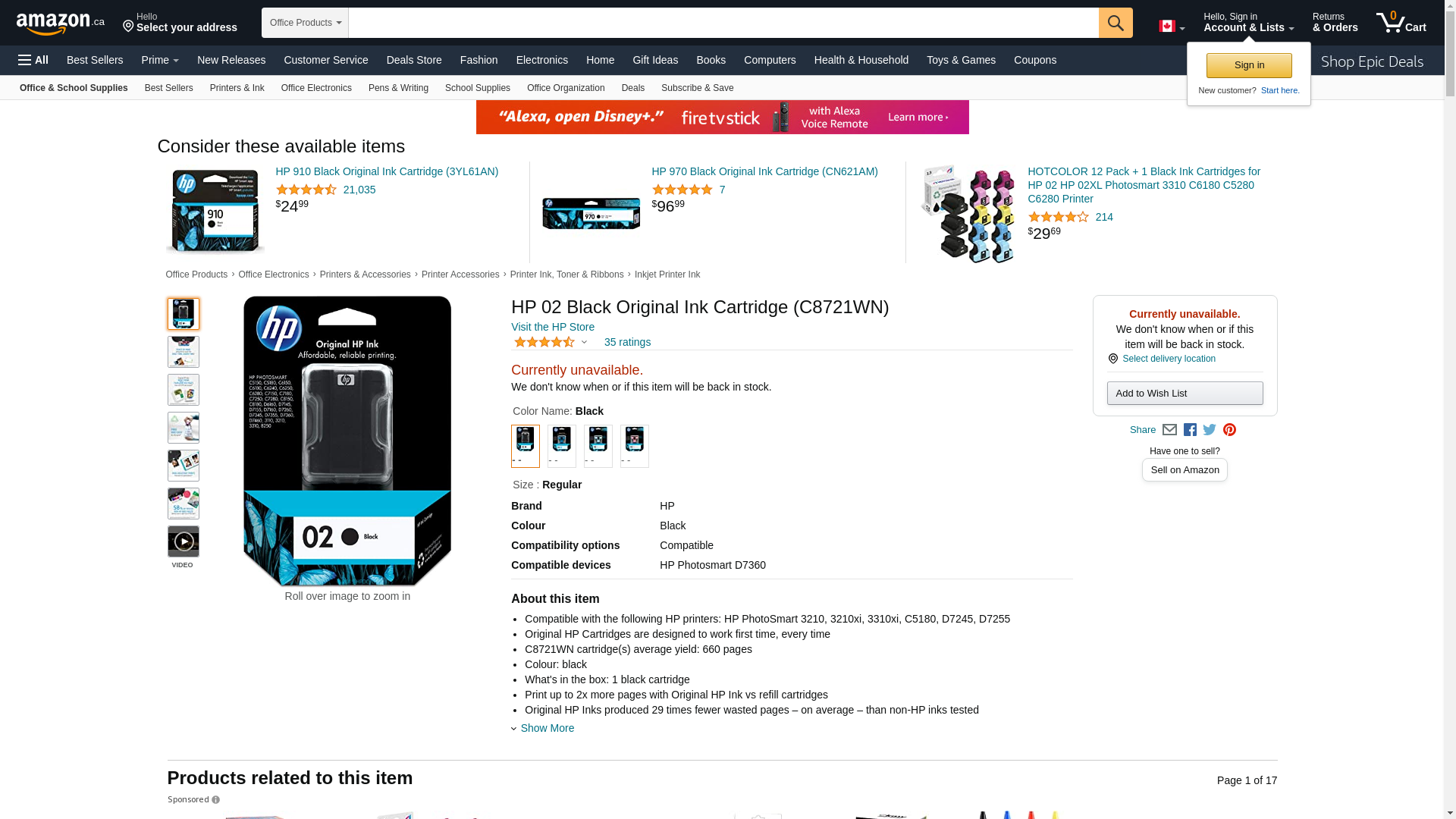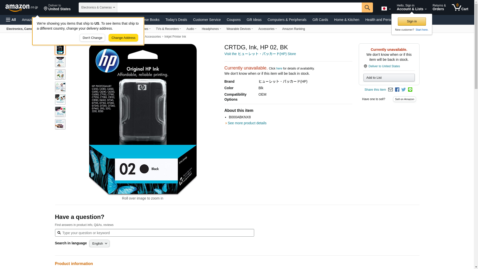- What's in the box: 1 New Original HP 02 ink cartridge (C8721WN)