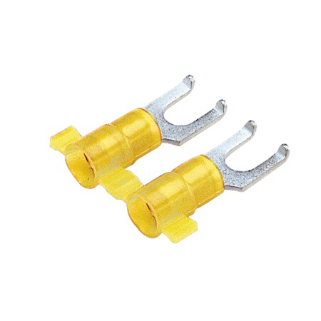 - Nylon-insulated flanged fork terminal reel for use with solid or stranded copper wire from #12 to #10 AWG (4 to 6 sq. mm) and #8 (M4) studs