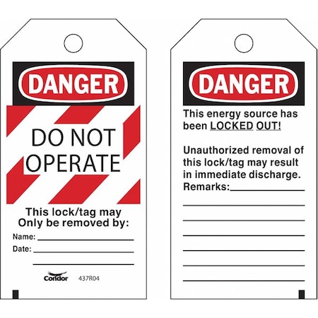 CONDOR Lockout Tag: Danger, Do Not Operate This Lock/Tag May Only Be Removed By, Black Legend, 25 PK - 437R04|CNDR-51511-1 - Grainger