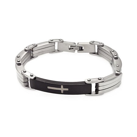 Stainless Steel Black ID Cross Bracelet (Silver Palace, Inc.)