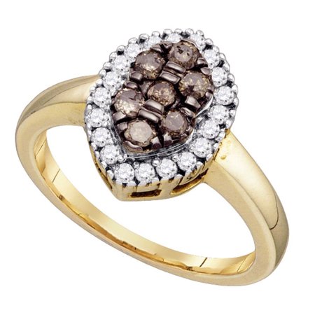 <ul> <li>1/2 Ct.t.w.</li> <li>10kt Yellow Gold</li> <li>I2-I3 clarity; Brown color</li> <li>Widest point width: 12.5 mm (.49 inches ) - Width of shank: 1.5 mm --- 3.56 grams (approx.)</li> <li>Gift box included.</li> </ul>