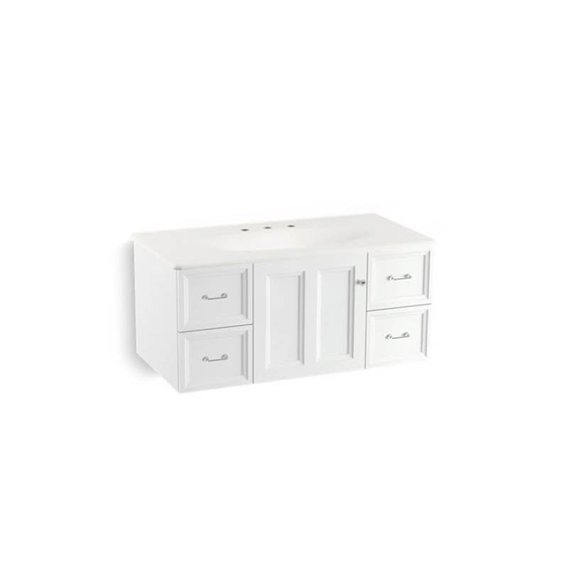 Kohler 99563-1WA Damask(R) 42 inch wall-hung bathroom vanity cabinet with 1 door and 4 drawers in Linen White