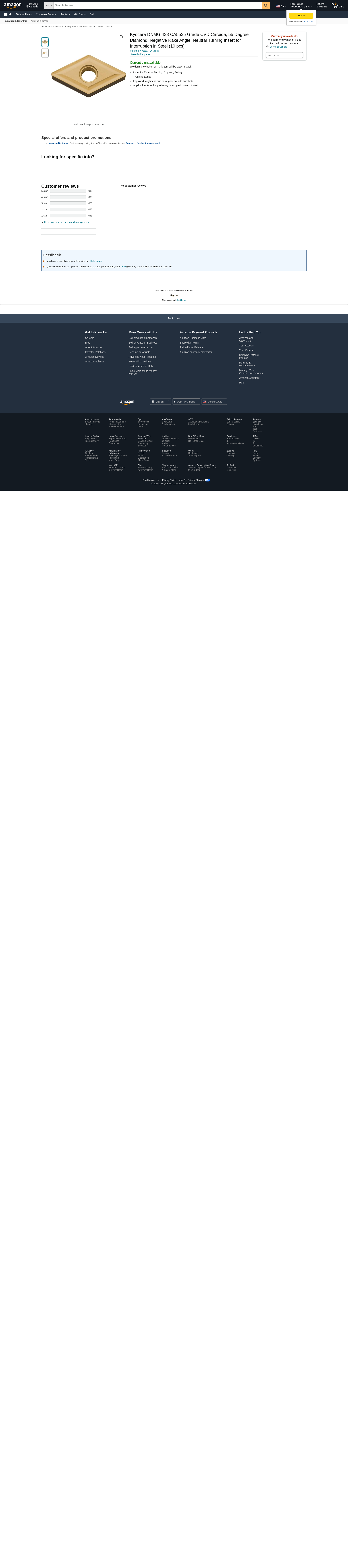 Kyocera DNMG 433 CA5535 Grade CVD Carbide, 55 Degree Diamond, Negative Rake Angle, Neutral Turning Insert for Interruption in Steel (10 pcs)