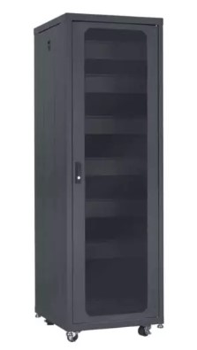 Lowell LCDR-3524 LCDR Series 35U x 24 Inches Deep Designer AV Rack with Tempered Glass Door and Accessories; Solid Top with Vents and Cable Entry Port(s); Rear Access Cover with Key Lock
