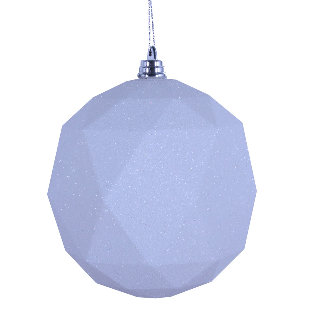 Vickerman 8 in. White Geometric Glitter Ball Christmas Ornament