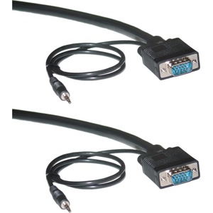 | Feature | Cable Type: SVGA cable| Cable Technology: Shielded| Left Connector Type: Mini-phone 3.5 mm; 15 pin HD D-Sub (HD-15)| Left Connector Gender: Male| Right Connector Type: Mini-phone 3.5 mm; 15 pin HD D-Sub (HD-15)| Right Connector Gender: Male| Features: 24K gold contact to minimize resistance and ensure full video bandwidth transfer . Fully shielded cable to eliminate external EMI/EMF interference . 3.5mm audio links -- ideal for sending audio to projector| Length: 100 feet |