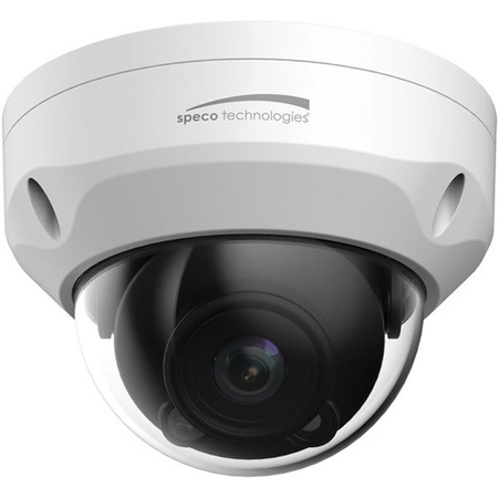The <b>O8VLD1</b> 4K UHD Outdoor Network Dome Camera from Speco Technologies uses a 1/1.8" progressive scan CMOS sensor to capture 3840 x 2160 resolution video at 30 fps. IR LEDs provide up to 98' of night vision. The camera's 2.8mm fixed lens delivers a 111° horizontal field of view. Integrated PoE technology simplifies connectivity by enabling the transfer of power and data through a single cable.</p><p>This dome camera complies with ONVIF profile S, making it compatible with a wide range of surveillance devices. It is housed in an IP67- and IK10-rated enclosure that is suitable for outdoor use in areas at risk of vandalism. A junction box is included for cable management.</p>