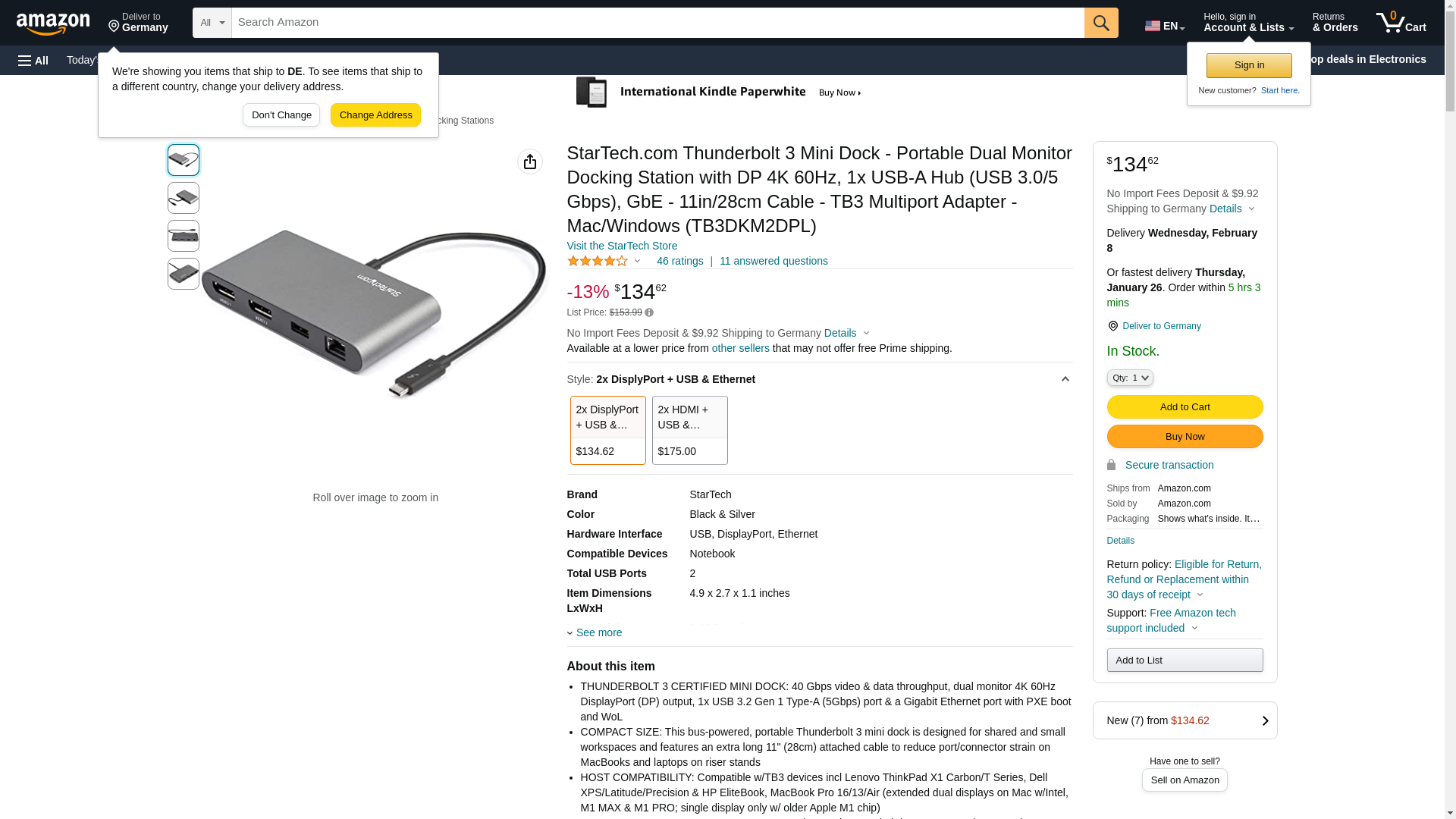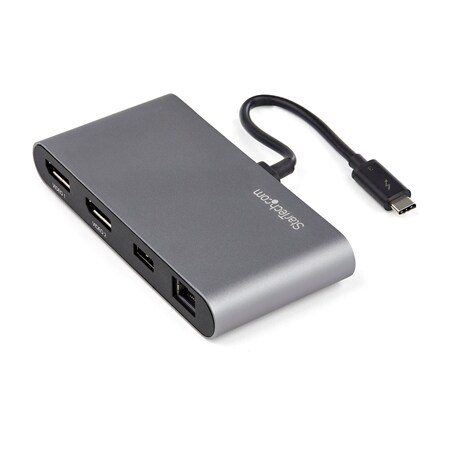 StarTech.com Thunderbolt 3 Mini Dock - Portable Dual Monitor Docking Station with DP 4K 60Hz, 1x USB-A Hub (USB 3.0/5 Gbps), GbE - 11in/28cm Cable - TB3 Multiport Adapter - Mac/Windows (TB3DKM2DPL)