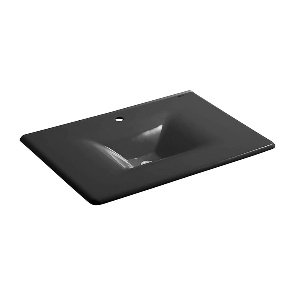 KOHLER K-3049-1-7 Iron/Impressions 31" Cast Iron One-Piece Surface and Integrated Bathroom Sink with Single-Hole Faucet Drilling, Black Black