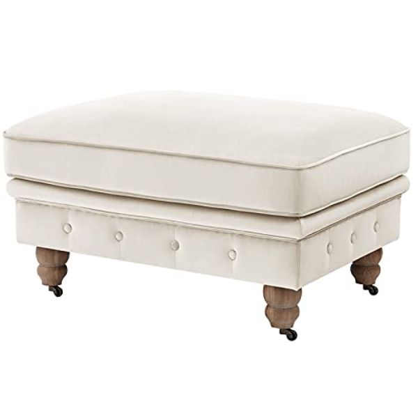 Posh Living SCO214-02BE-UE 20 x 25 x 36 in. Londynn Button Tufted Velvet Cocktail Ottoman, Beige