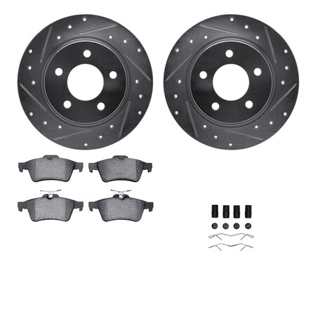 Dynamic Friction Company Rear Brake Rotors-Drilled and Slotted-Silver with 5000 Euro Ceramic Brake Pads includes Hardware 7612-80001