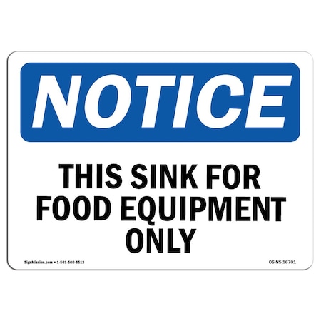 OSHA Notice Sign, NOTICE This Sink For Food Equipment Only, 18in X 12in Decal