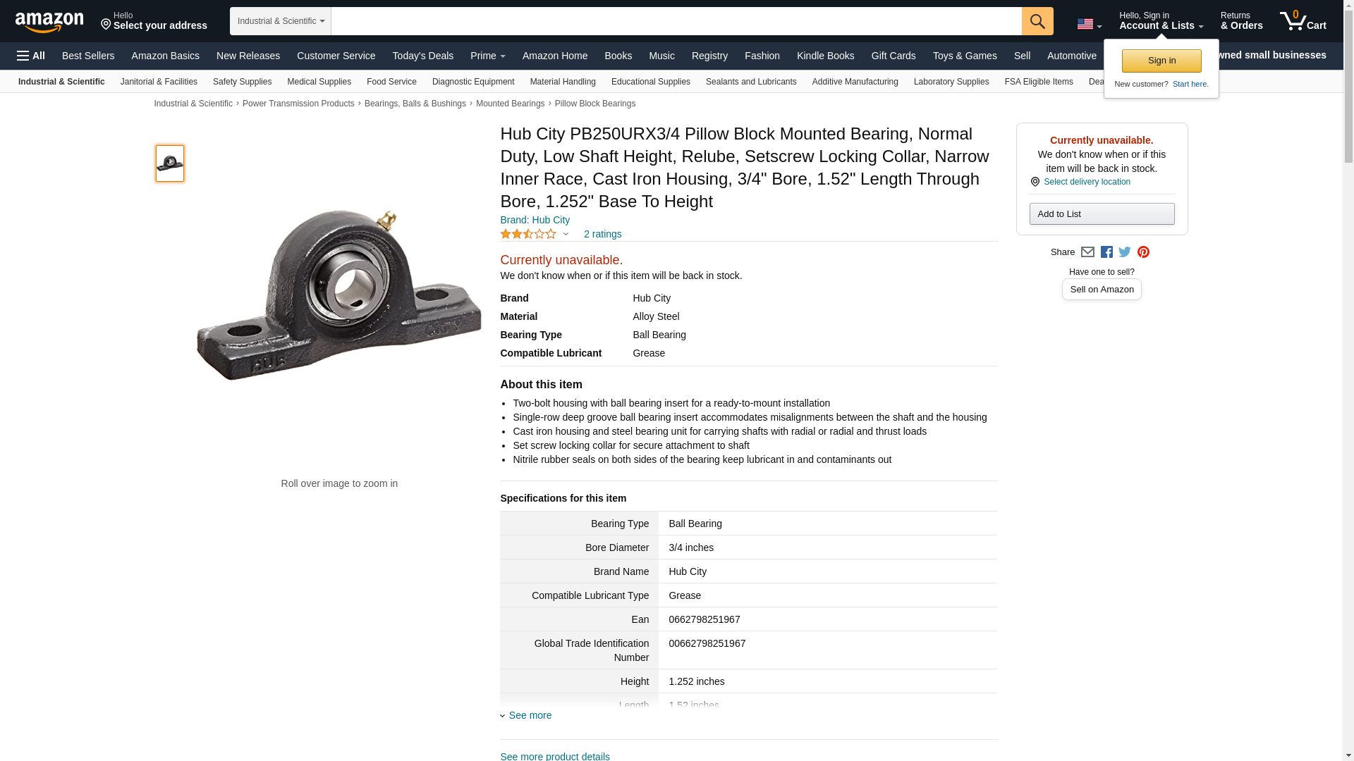 Hub City PB250URX3/4 Pillow Block Mounted Bearing, Normal Duty, Low Shaft Height, Relube, Setscrew Locking Collar, Narrow Inner Race, Cast Iron Housing, 3/4" Bore, 1.52" Length Through Bore, 1.252" Base To Height