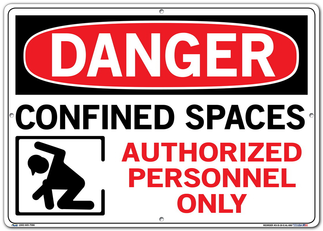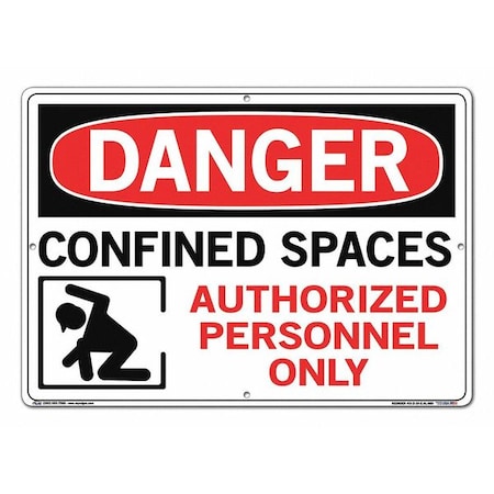 Vestil SI-D-39-E-AL-080 CONFINED SPACE AUTHORIZED PERSONNEL ONLY Danger Sign, Aluminum, 0.080" Overall Size, 20.5" W x 14.5" H