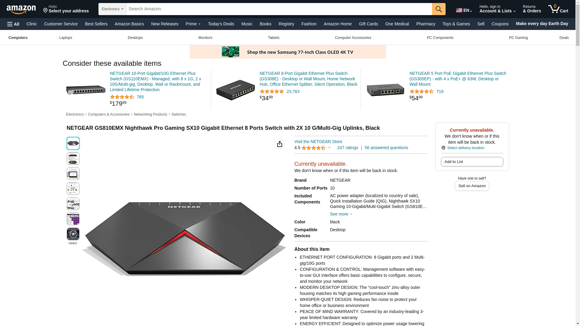 NETGEAR GS810EMX Nighthawk Pro Gaming SX10 Gigabit Ethernet 8 Ports Switch with 2X 10 G/Multi-Gig Uplinks, Black