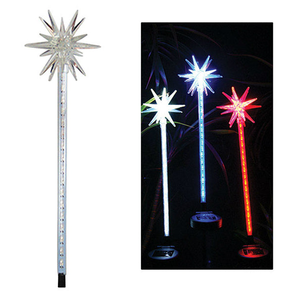 SOLAR STARBURST GARDEN STAKE WITH MOTION LED WHITE/BLUE/RED 4X4X33 INCH